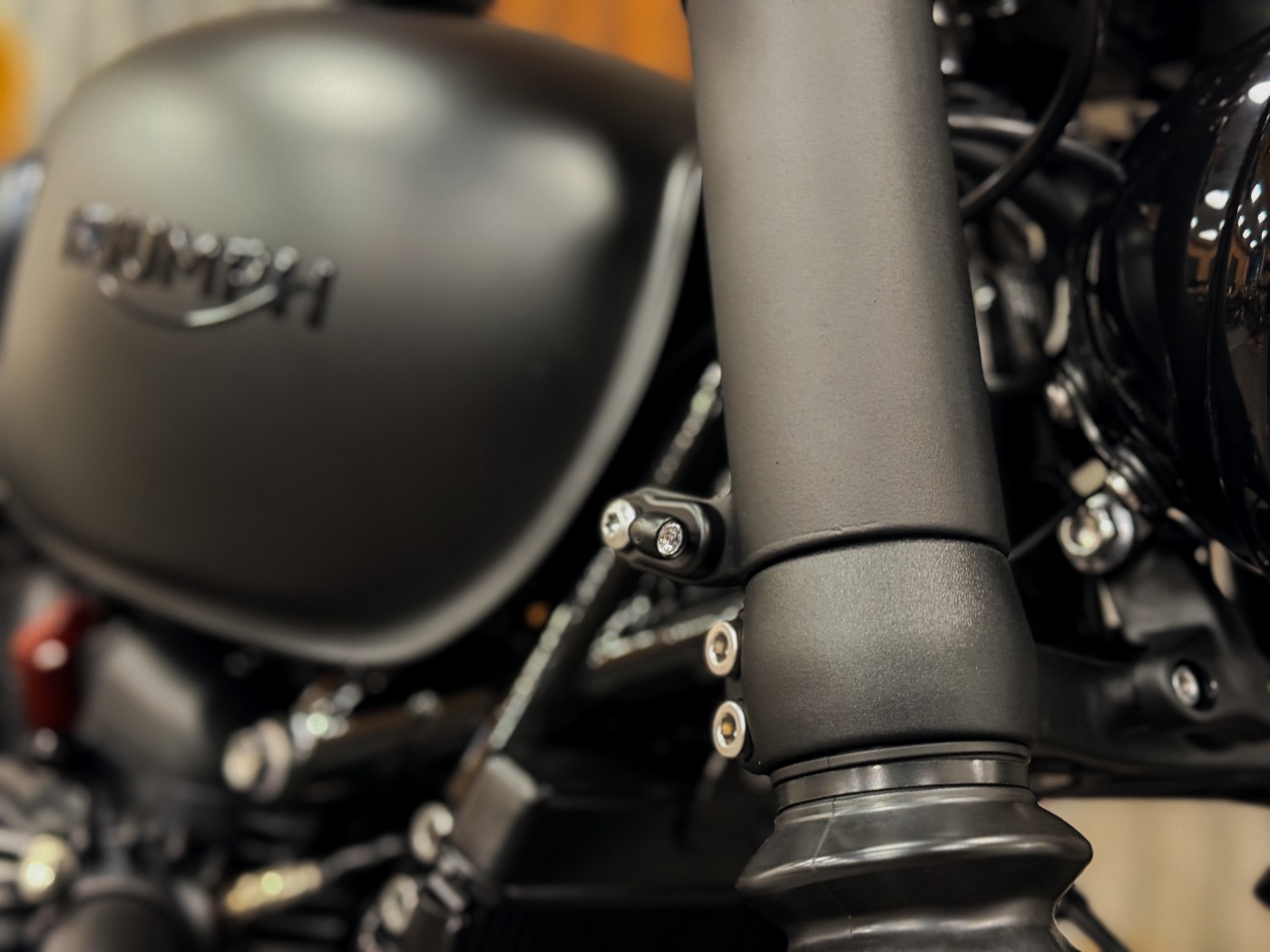 Une custom entièrement noir mat, brute, radicale et sans compromis.