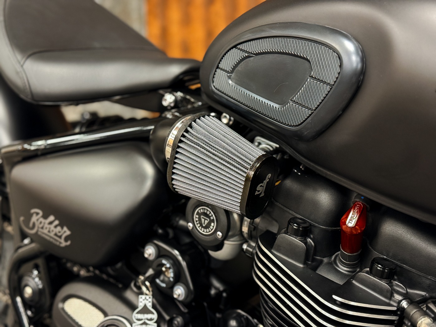 Les filtres à air ont laissé place à des versions externes, permettant à cette Bobber de mieux respirer et d’afficher immédiatement un look plus agressif.