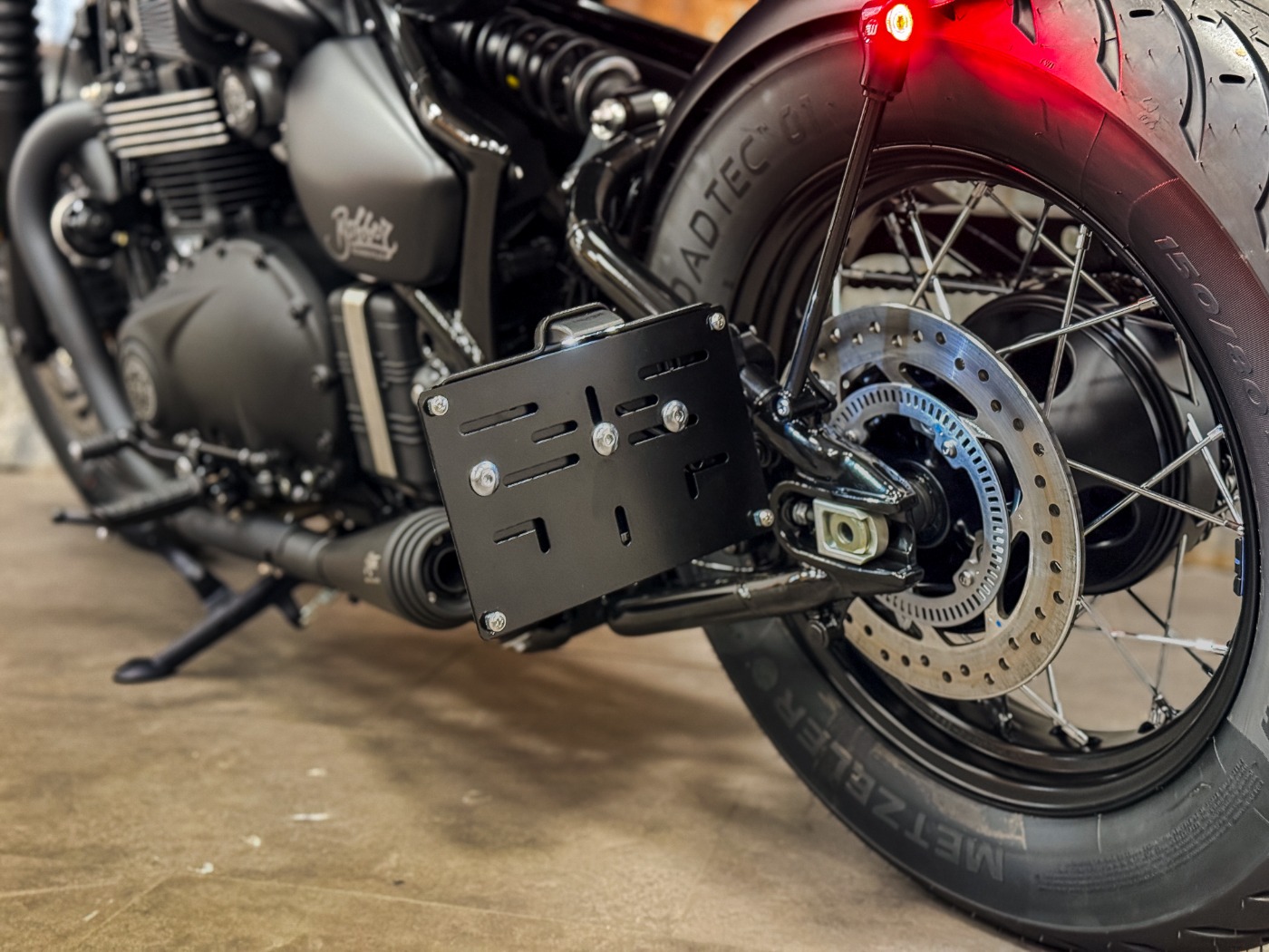 En touche finale, cette Bobber reçoit également un support de plaque latéral rabattable.