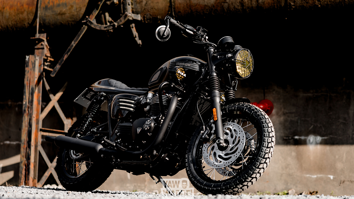 Notre Bonneville T120 Black a reçu une transformation totalement post-apocalyptique.