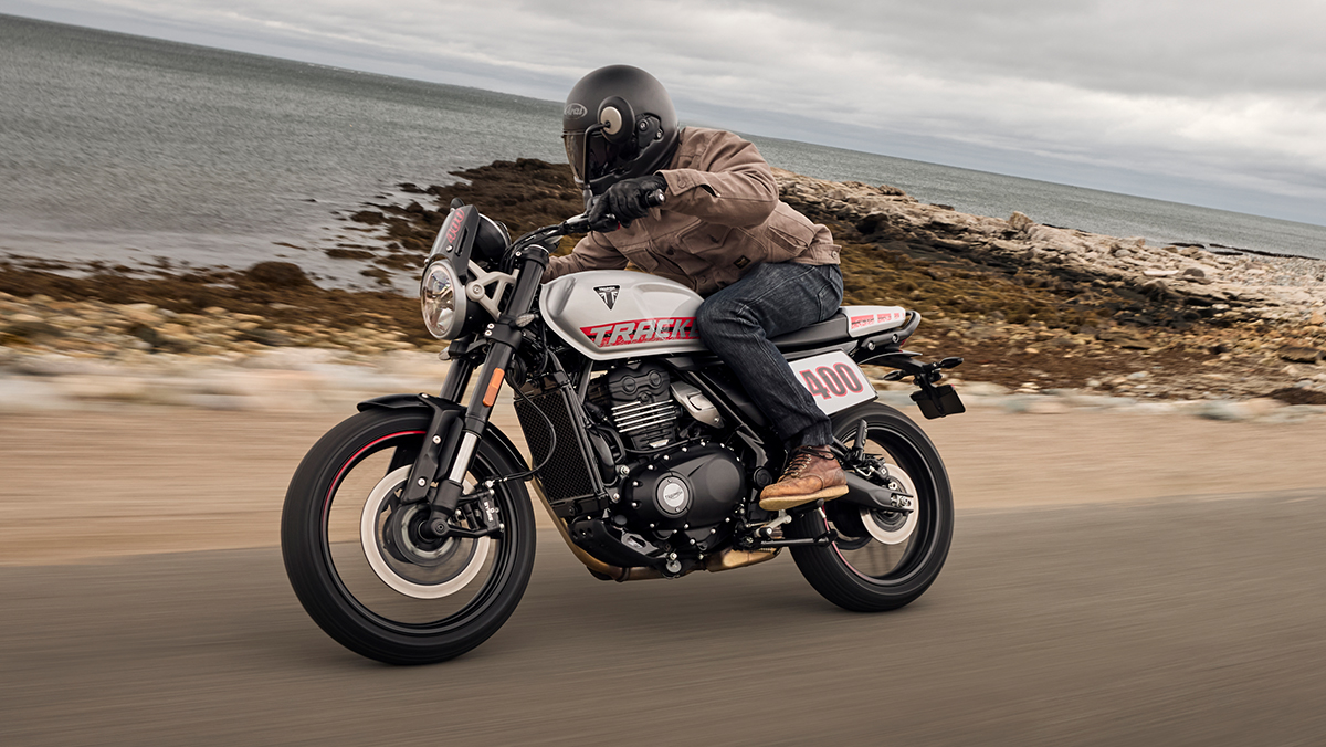 La Triumph Tracker 400 apporte l’esprit flat track sur la route, avec un style affirmé et un caractère résolument sportif. Cette modern classic combine un design minimaliste, une position de conduite dominante et le savoir-faire Triumph.