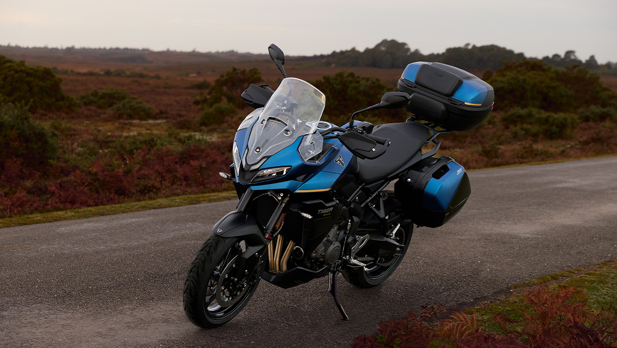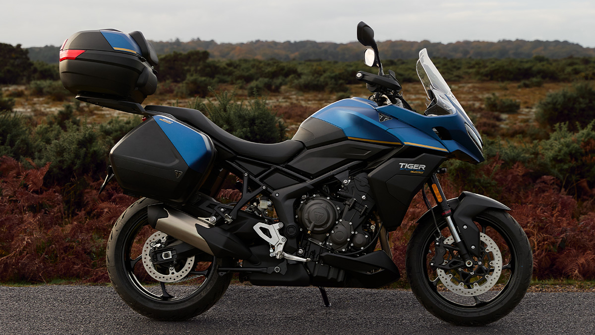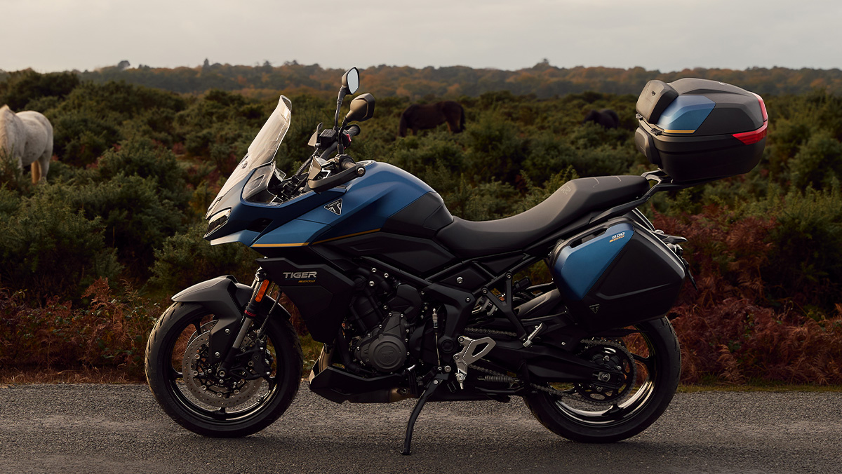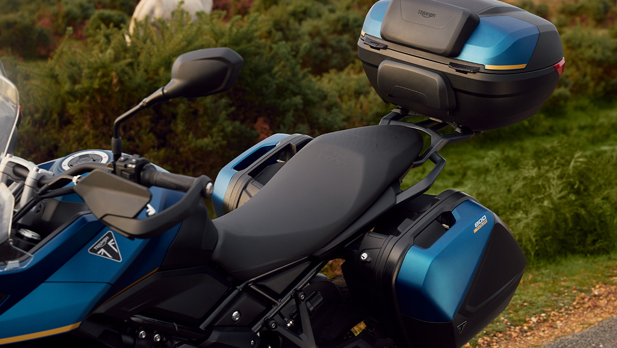 La Tiger Sport 800 Tour est équipée de série d’une béquille centrale, de poignées chauffantes, de protège-mains et d’une selle Confort double. Un système de bagagerie complet est également inclus, comprenant des valises latérales assorties à la couleur, un porte-bagages en aluminium et un top-case pouvant accueillir deux casques avec coussins de dossier. Le système de contrôle de la pression des pneus (TPMS) est également monté de série.