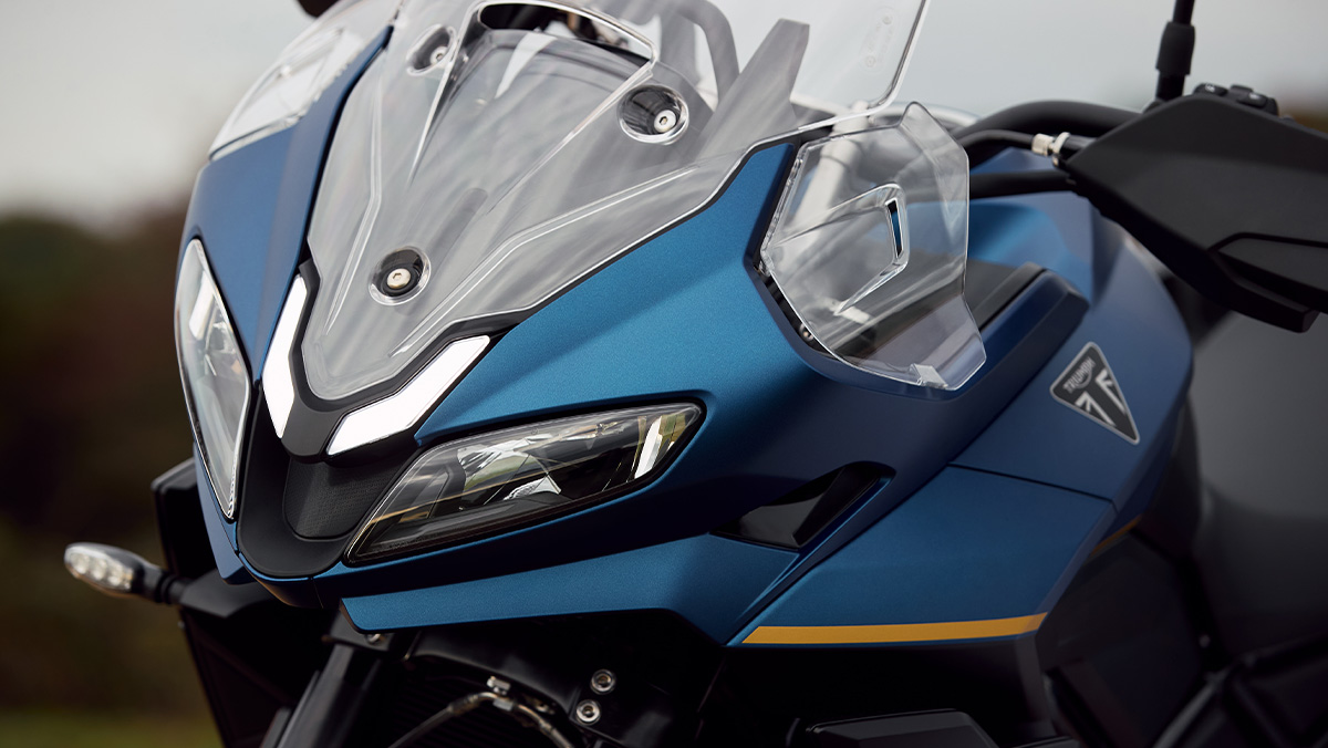 La motorisation est assurée par le trois-cylindres Triumph de 800 cm³, développant 115 ch à 10 750 tr/min et 84 Nm à 8 500 tr/min, avec 90 % du couple disponible sur la plage de régime intermédiaire. Le poids tous pleins faits, bagagerie comprise, est de 232 kg.