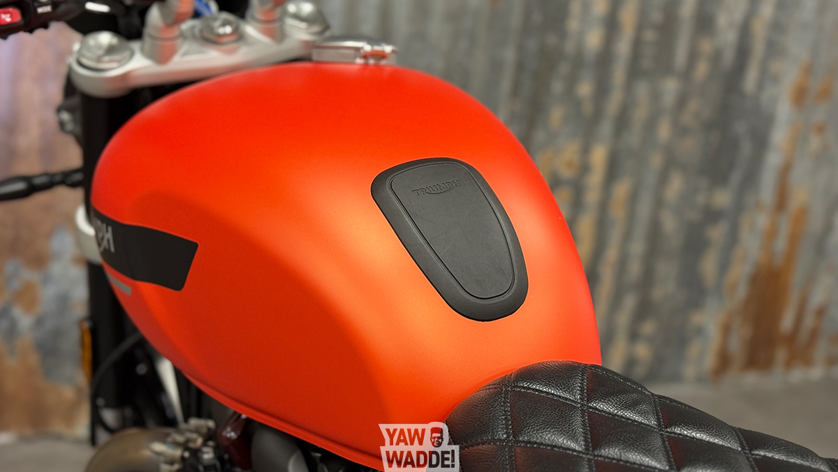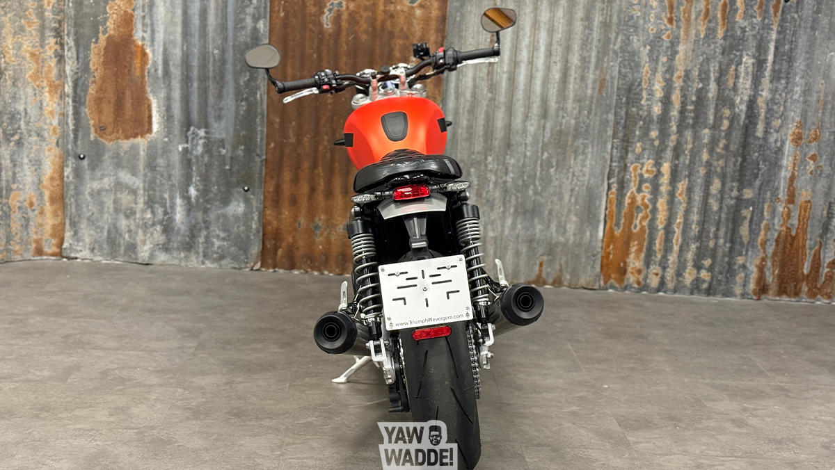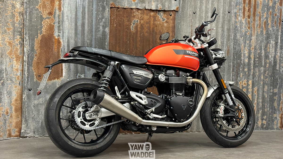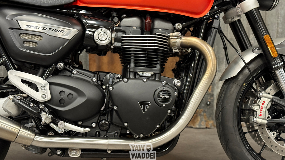 Cette Speed Twin 1200 dans la superbe couleur Matt Baja Orange combine un look rétro et une attitude moderne pleine de muscles.