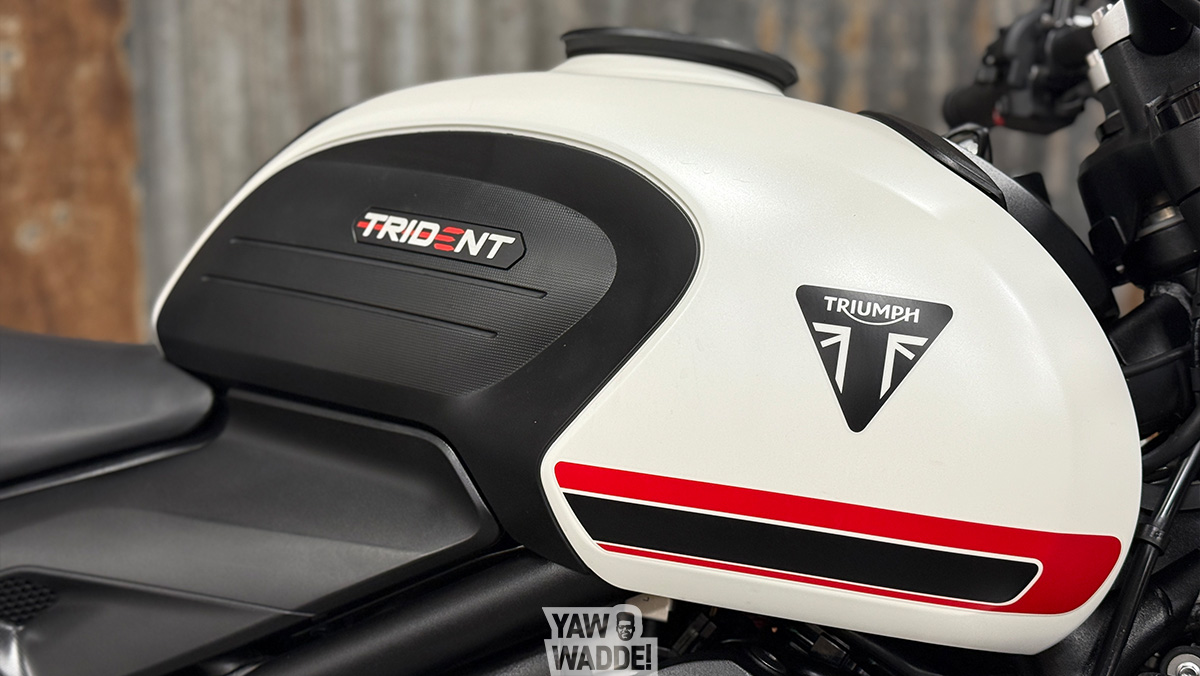 📍 Viens découvrir cette superbe Trident 660 Crystal White Mat dans notre showroom – mais attention : un essai, et tu ne voudras plus la rendre.