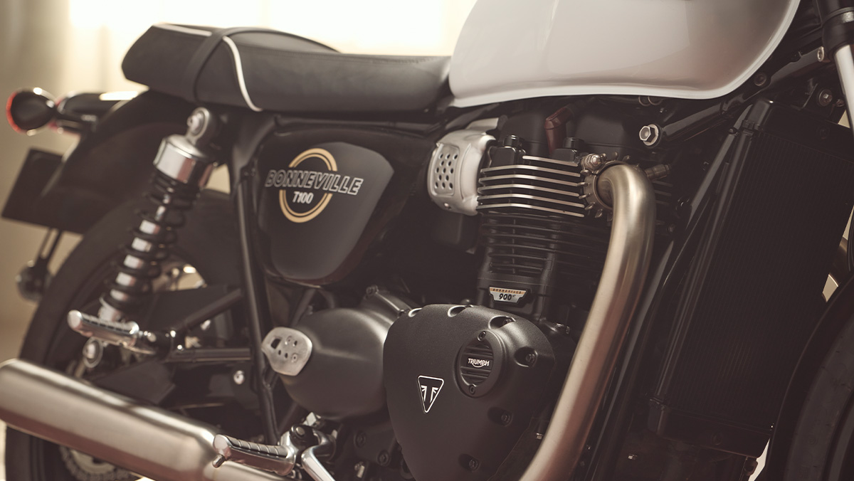 De 900 cc paralleltwin levert soepele en toegankelijke prestaties met een karaktervolle sound. Dankzij het lichte chassis en de uitgebalanceerde geometrie voelt de T100 wendbaar en stabiel aan, ideaal voor zowel dagelijks gebruik als ontspannen weekendritten.