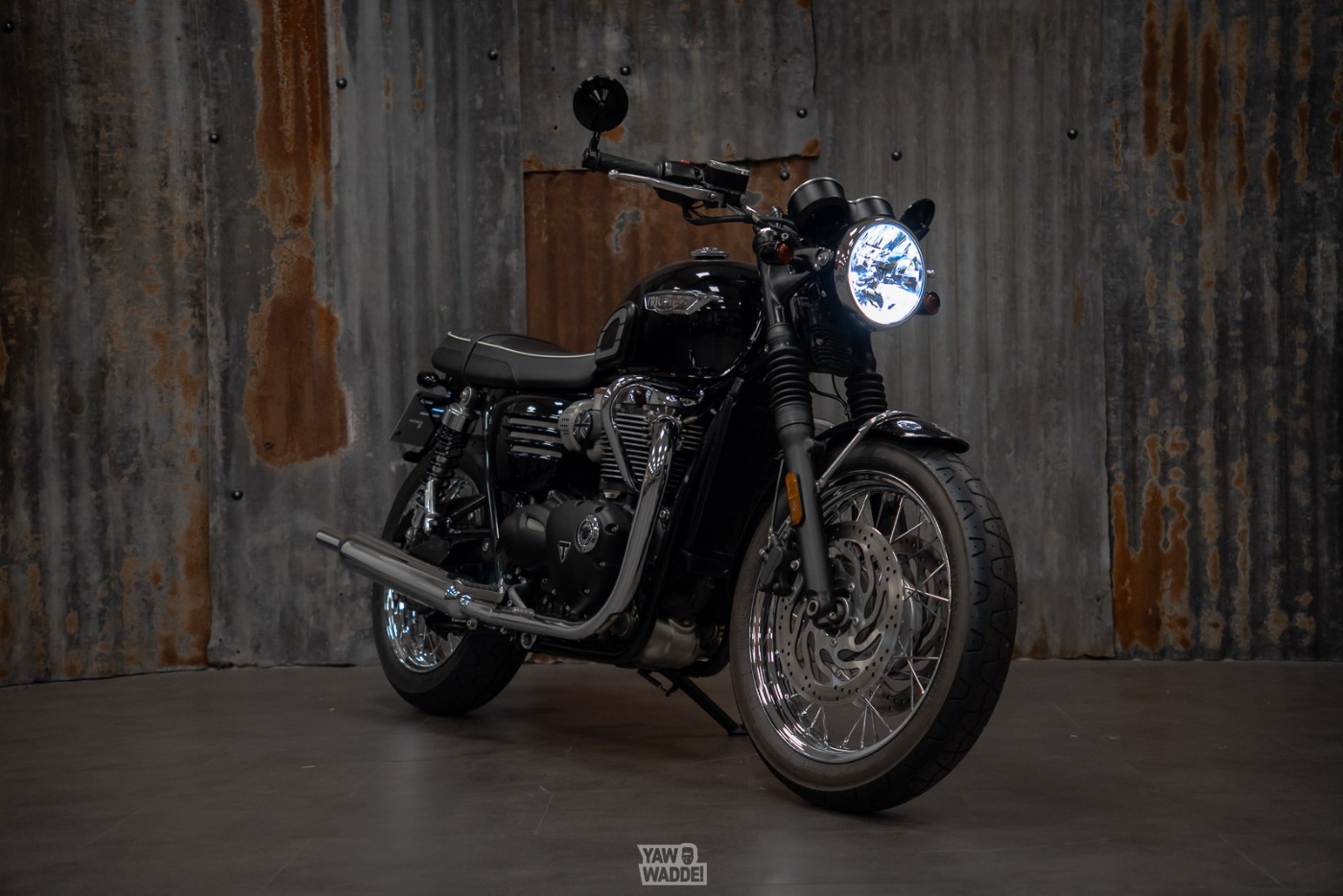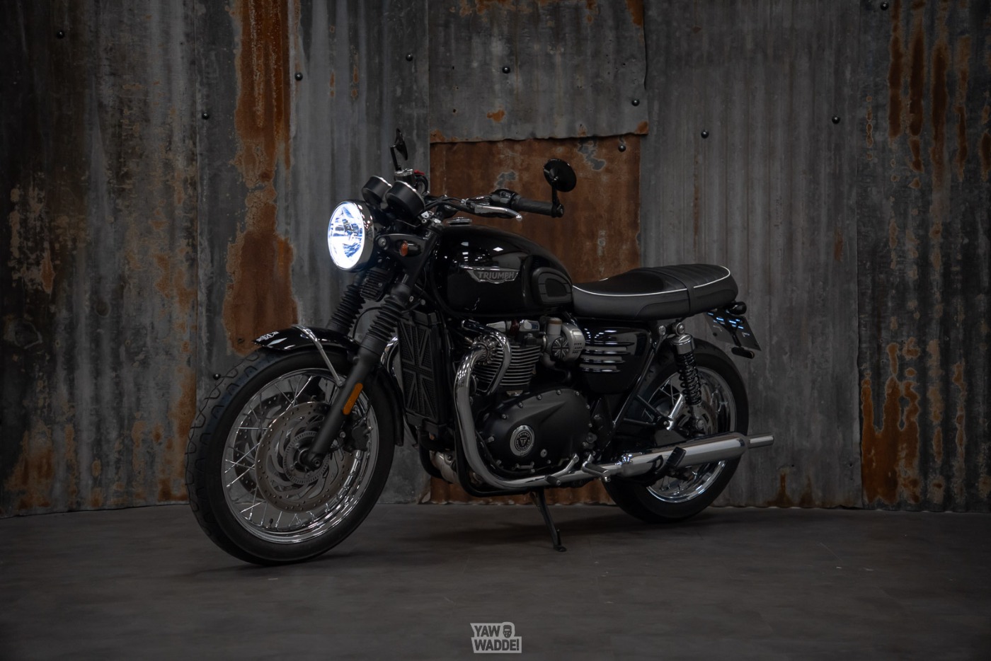 Deze Bonneville T120 Jet Black is exact dat: stijlvol, soepel en tot in de details verfijnd. Een gentleman met pit.