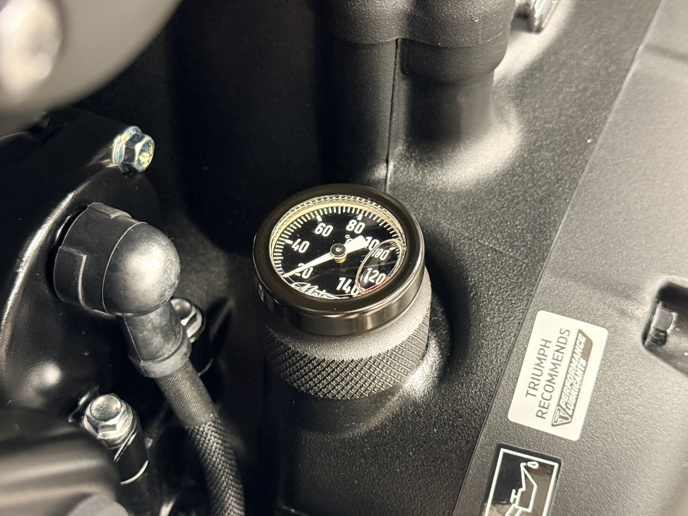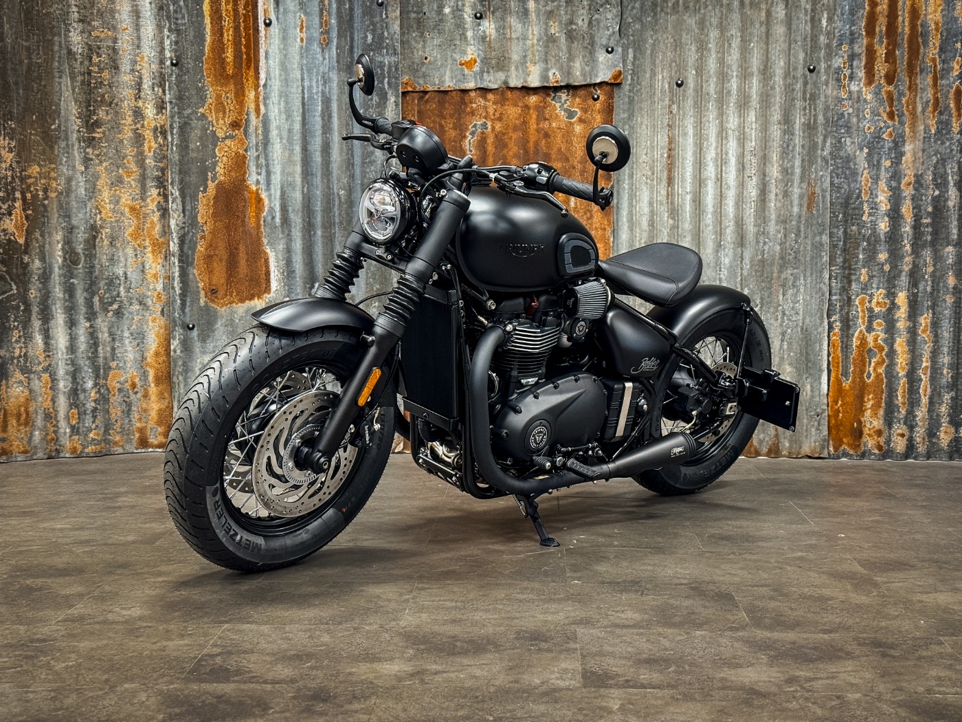 Toute la ligne d’échappement a été remplacée par une configuration noir mat avec silencieux Motone Customs.