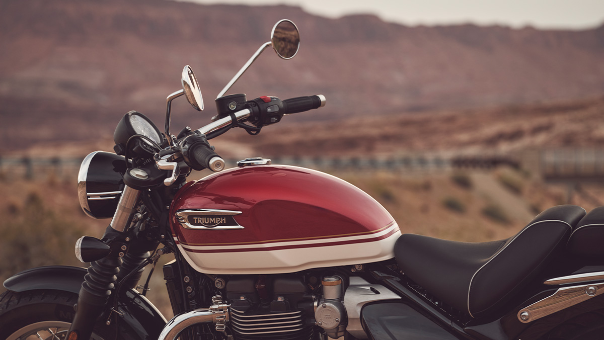 La Triumph Bonneville Speedmaster est un cruiser britannique raffiné qui associe un design classique à un confort moderne, des performances généreuses et une technologie pensée pour le pilote.