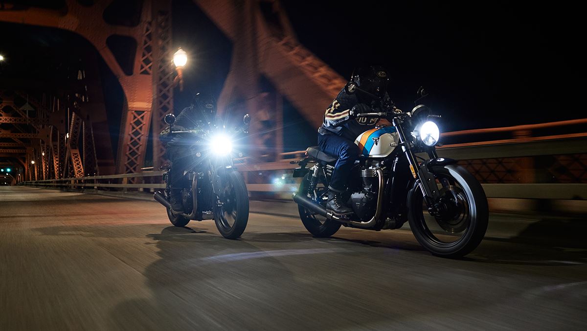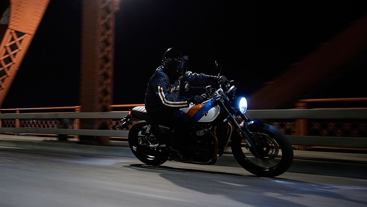 La Speed Twin 900 est équipée de série de modes de conduite, de l’ABS et du contrôle de traction.