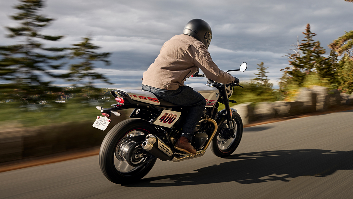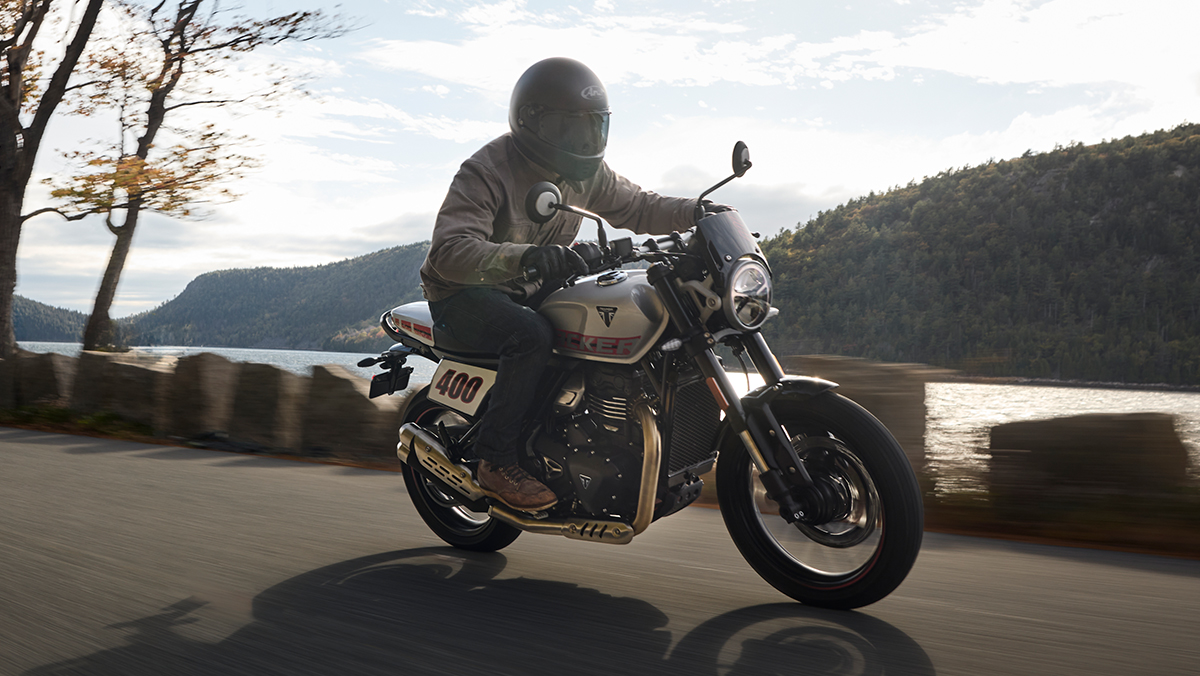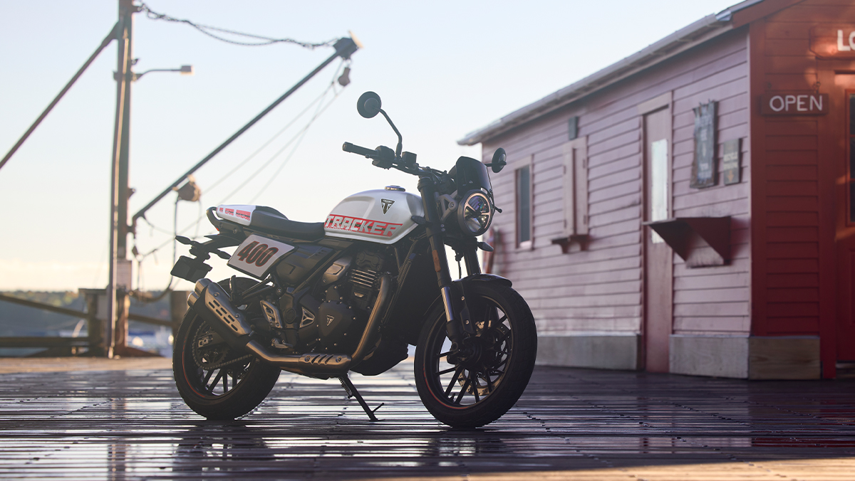 La Triumph Tracker 400 apporte l’esprit flat track sur la route, avec un style affirmé et un caractère résolument sportif. Cette modern classic combine un design minimaliste, une position de conduite dominante et le savoir-faire Triumph.