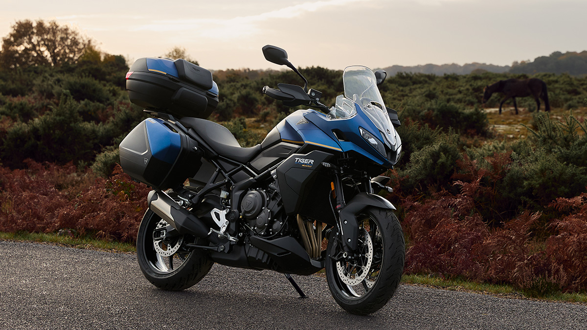 La Tiger Sport 800 Tour est équipée de série d’une béquille centrale, de poignées chauffantes, de protège-mains et d’une selle Confort double. Un système de bagagerie complet est également inclus, comprenant des valises latérales assorties à la couleur, un porte-bagages en aluminium et un top-case pouvant accueillir deux casques avec coussins de dossier. Le système de contrôle de la pression des pneus (TPMS) est également monté de série.