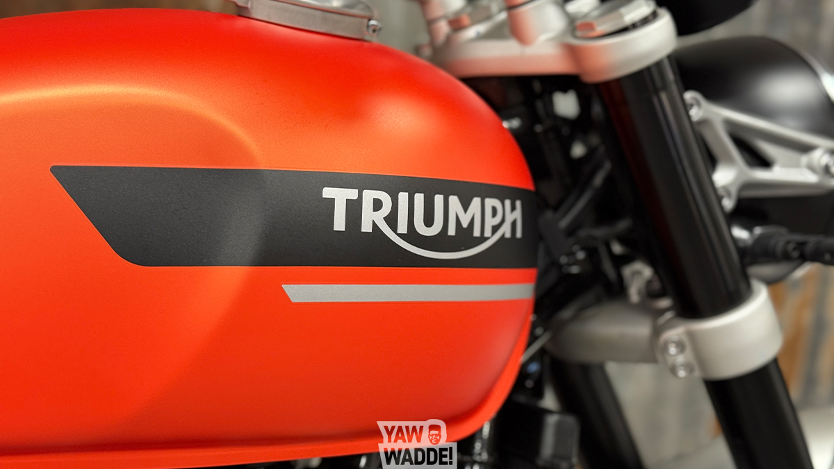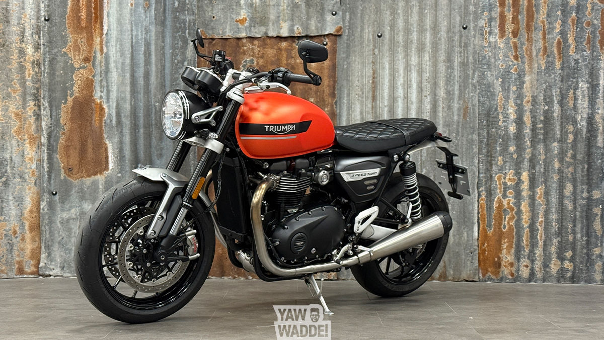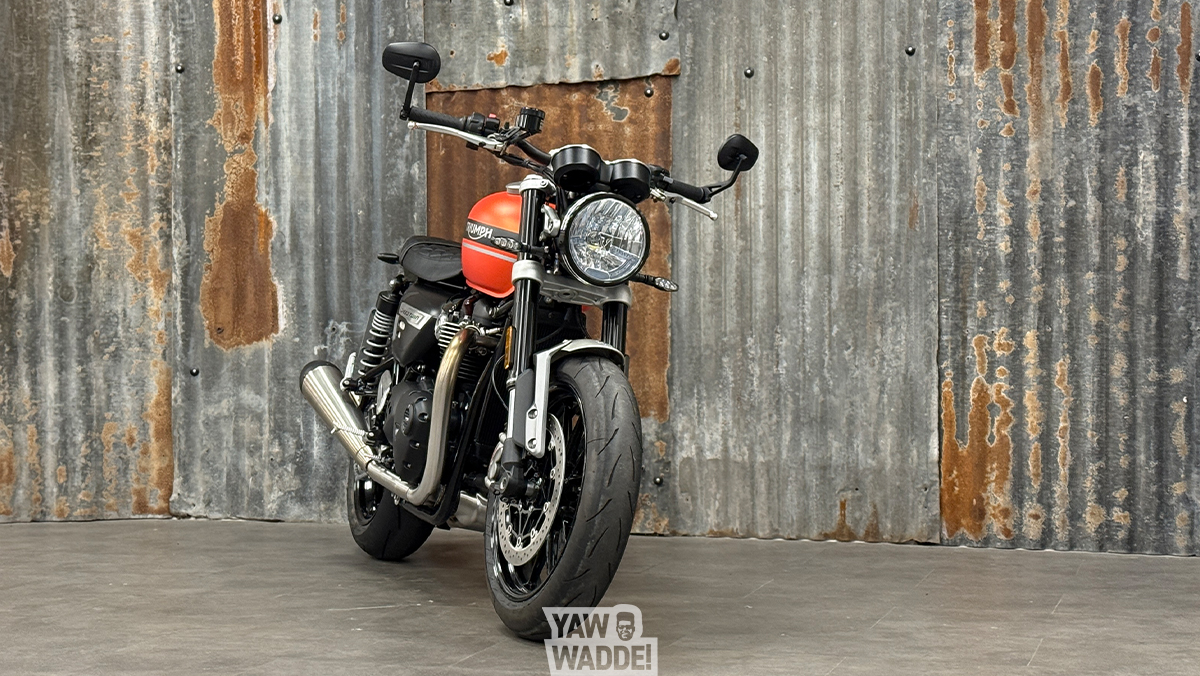 Cette Speed Twin 1200 dans la superbe couleur Matt Baja Orange combine un look rétro et une attitude moderne pleine de muscles.