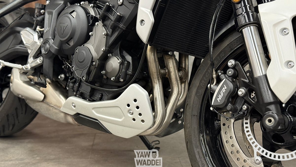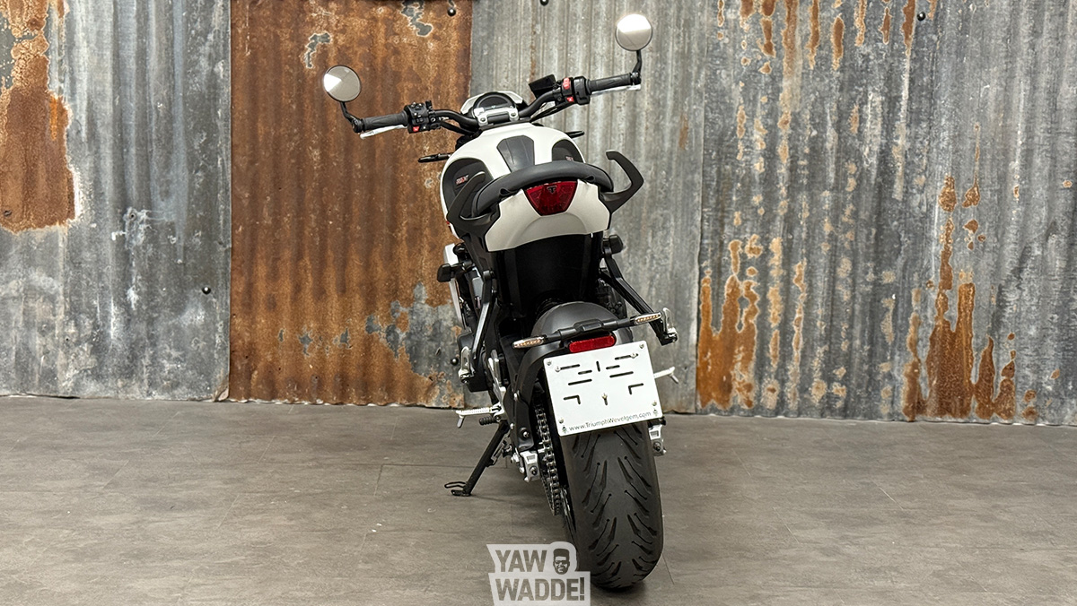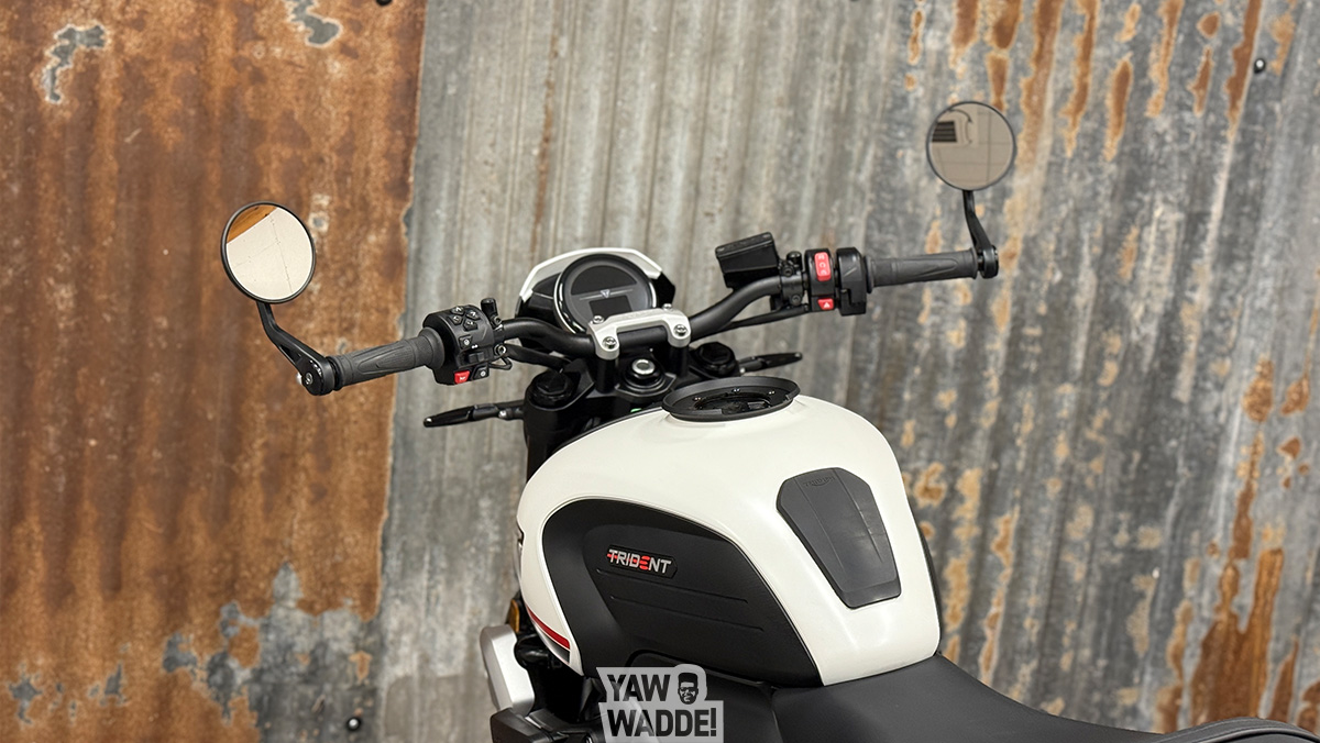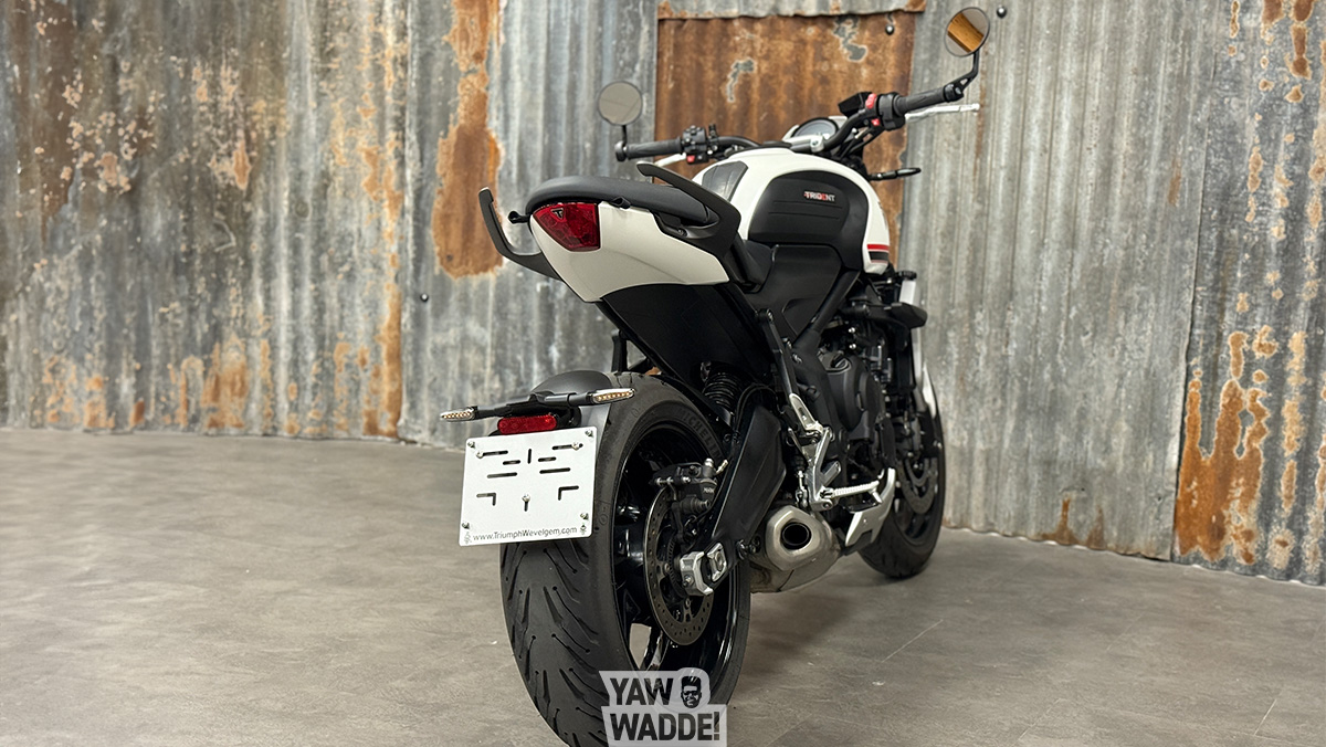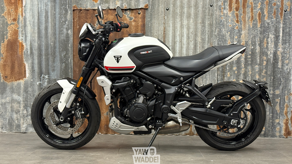 📍 Viens découvrir cette superbe Trident 660 Crystal White Mat dans notre showroom – mais attention : un essai, et tu ne voudras plus la rendre.
