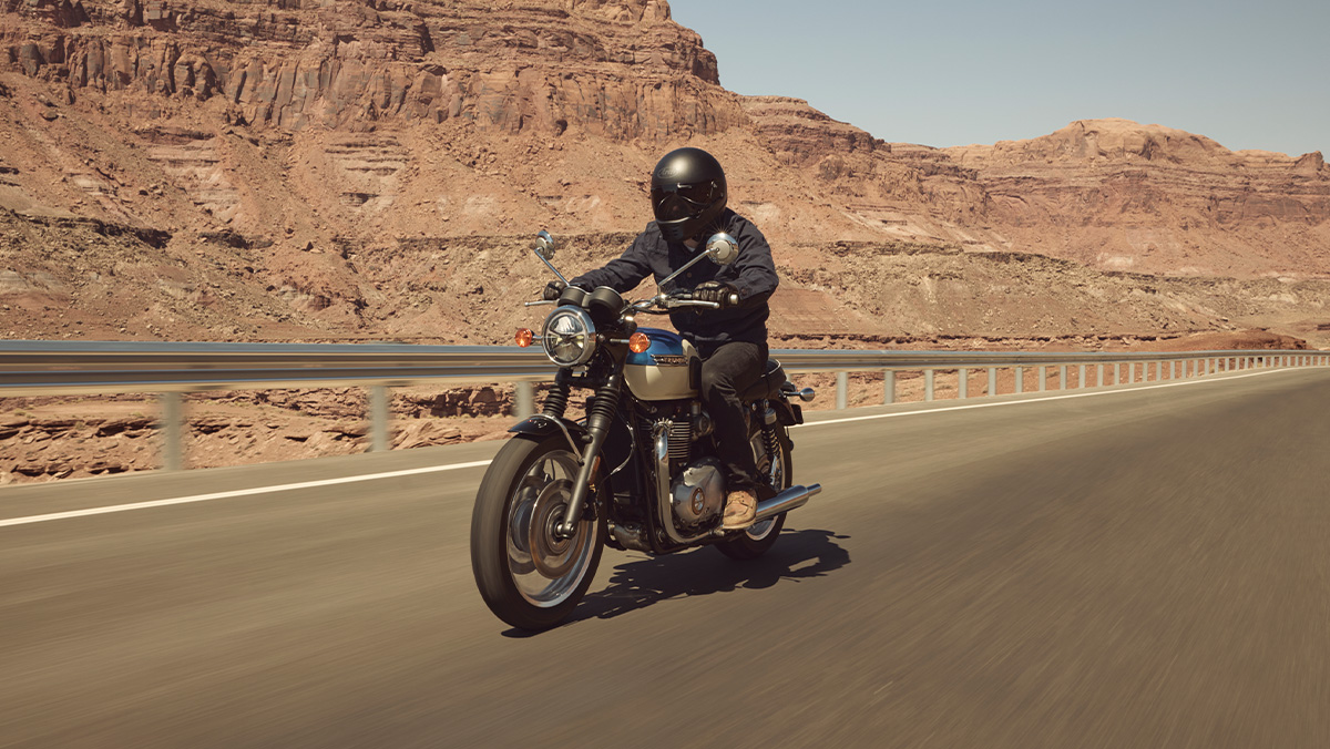 De T120 wordt aangedreven door de karaktervolle 1200 cc Bonneville High Torque-twin, goed voor 78 pk en 105 Nm koppel. Dankzij het sterke lage- en middentoerengebied levert de motor moeiteloze acceleratie en ontspannen rijcomfort, ideaal voor zowel dagelijks gebruik als lange toertochten.