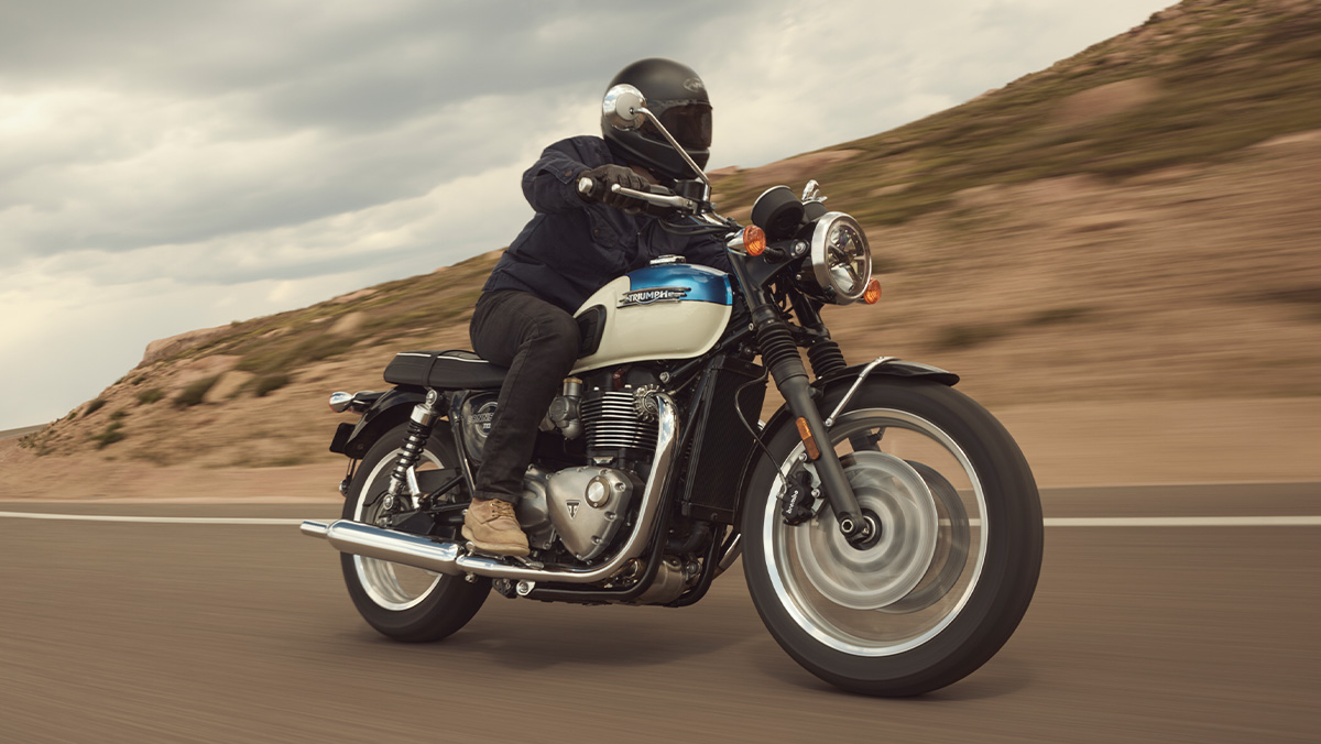 De Triumph Bonneville T120 is het icoon van modern classic motorrijden. Ze combineert tijdloos Brits design met krachtige prestaties, hoog comfort en moderne technologie, en is gemaakt voor rijders die stijl net zo belangrijk vinden als rijbeleving.