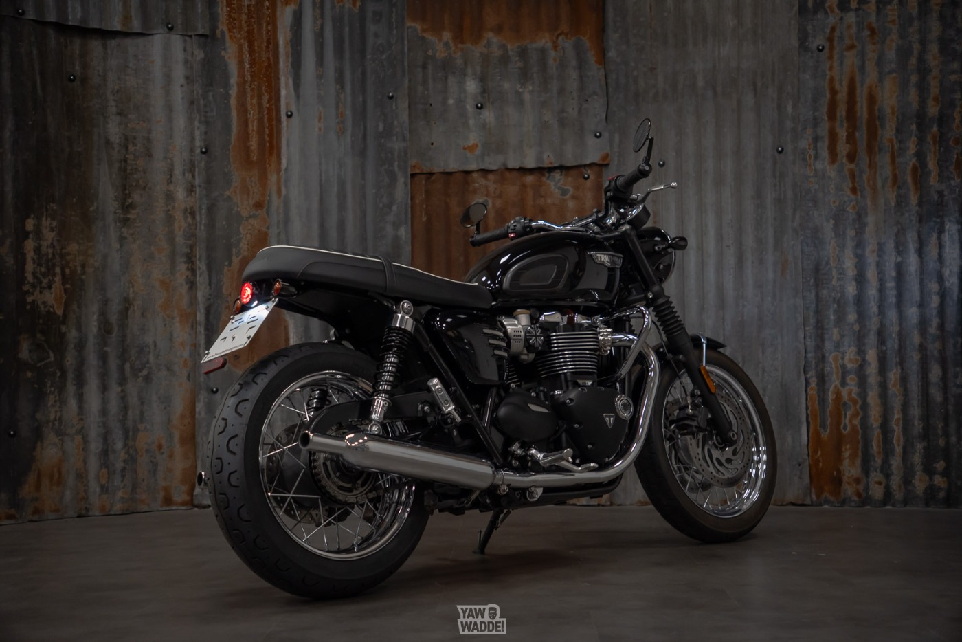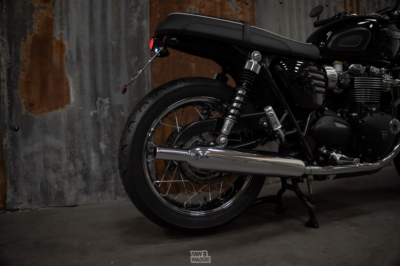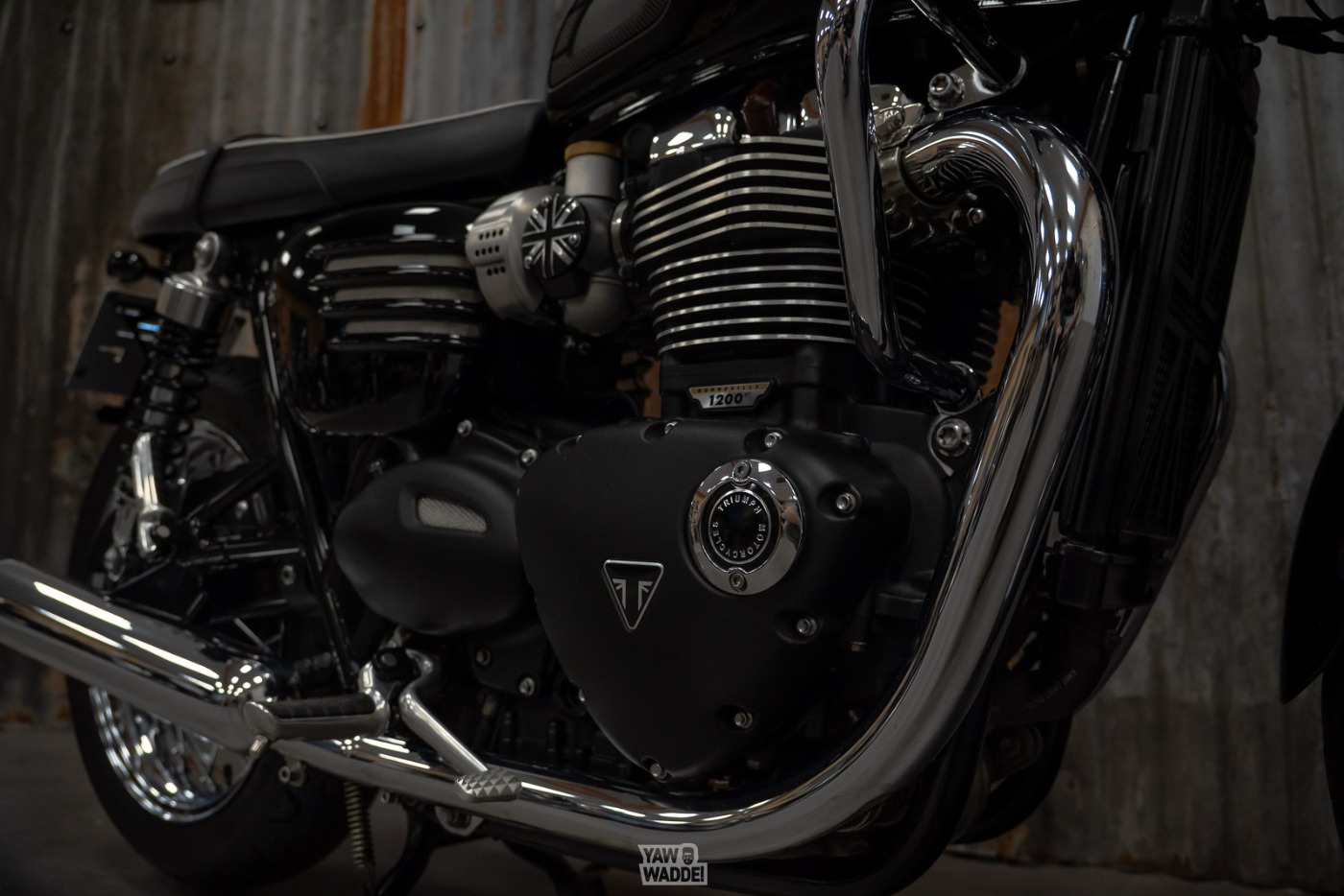 Deze Bonneville T120 Jet Black is exact dat: stijlvol, soepel en tot in de details verfijnd. Een gentleman met pit.
