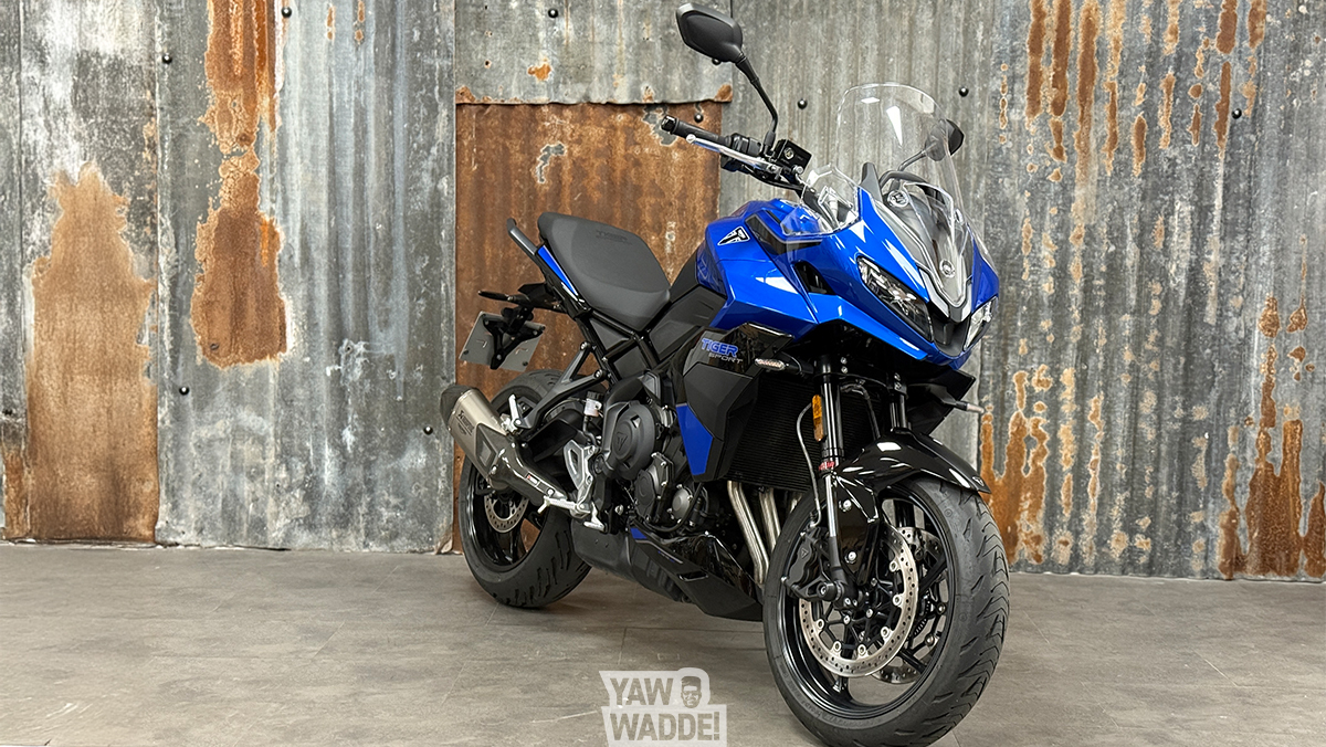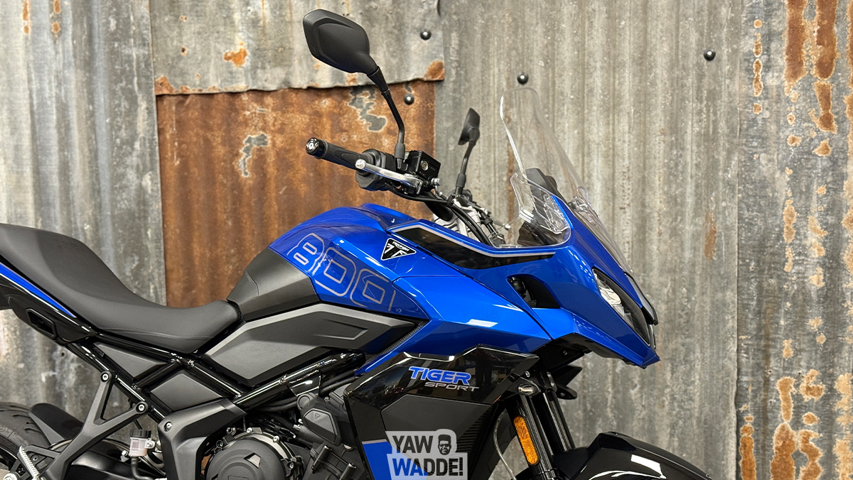 Deze Tiger Sport 800 in Caspian Blue is er eentje die alles doet. Comfortabel voor woon werk, plezant in de Ardennen, stabiel op de snelweg en scherp genoeg om elke bocht leuker te maken dan de vorige.
