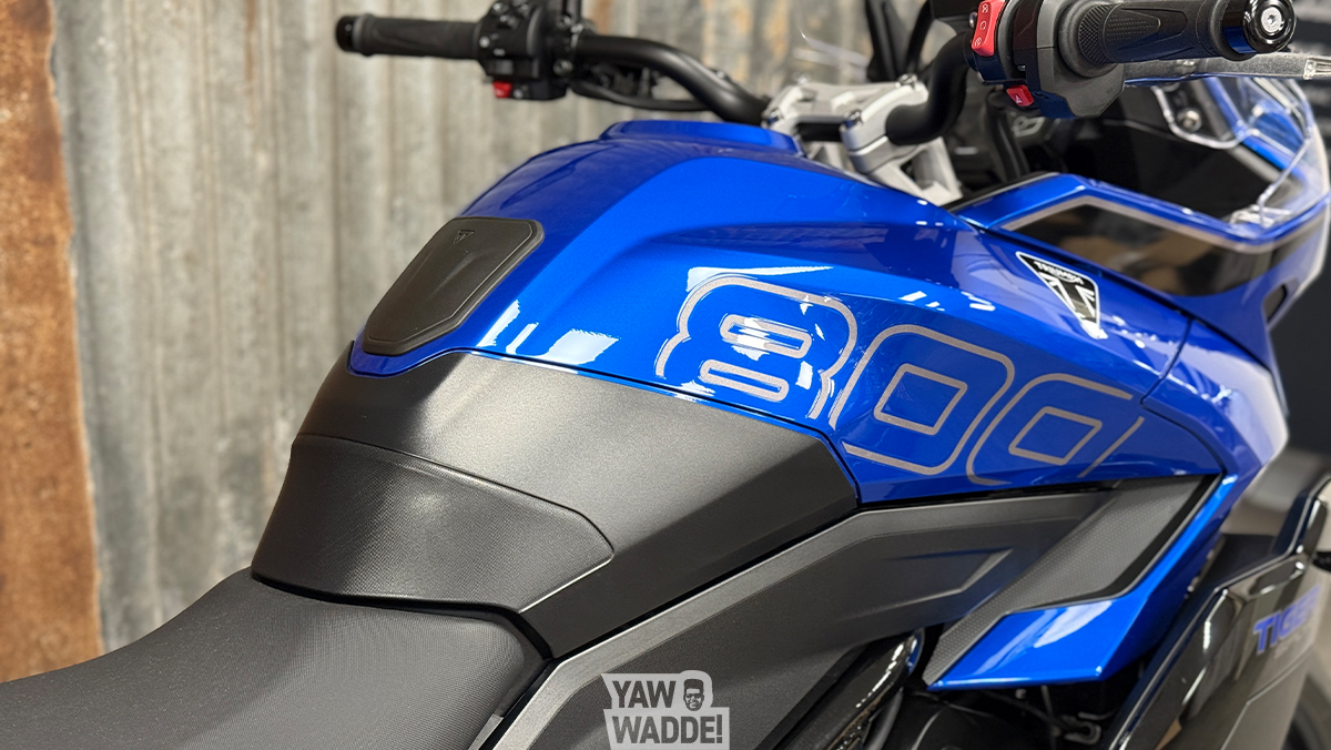 Dit is geen standaard Tiger Sport 800. Dit is een volledig aangeklede versie met alles erop en eraan.